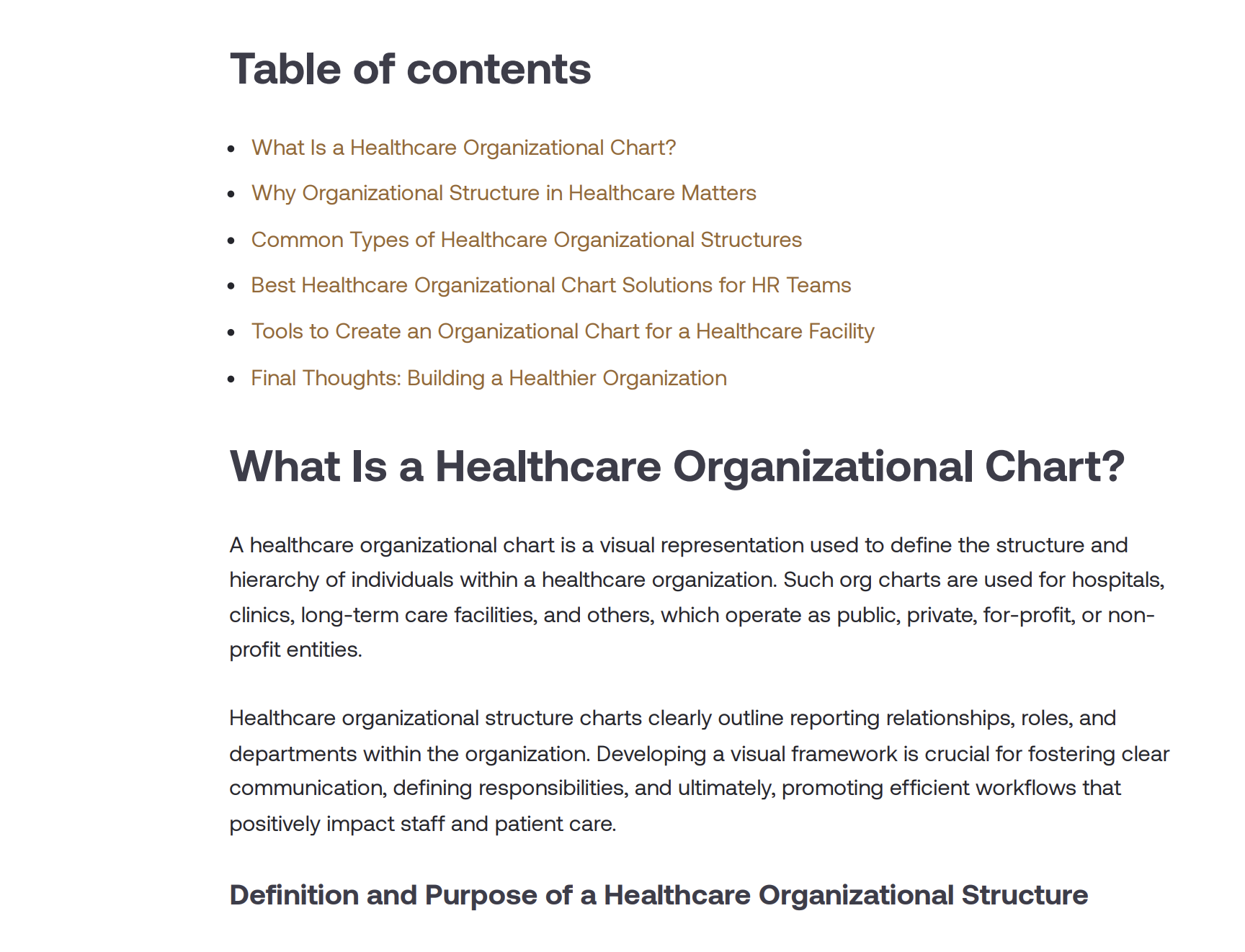 Published Deliverable: Healthcare Organizational Chart Blog Post